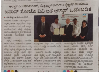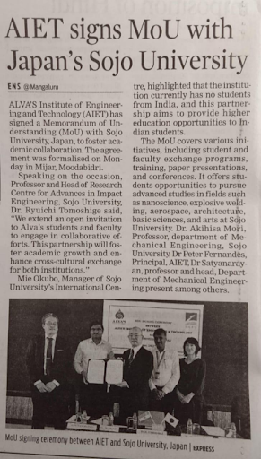 Alva’s Institute of Engineering & Technology, India and Faculty and Graduate School of Engineering, Sojo University, Japan, have signed a Memorandum of Understanding (MOU) on 16th December 2024 to promote friendship and academic exchanges in various areas of education and research.